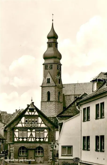 AK / Ansichtskarte Hofheim_Taunus Ortszentrum mit Kirche Hofheim Taunus