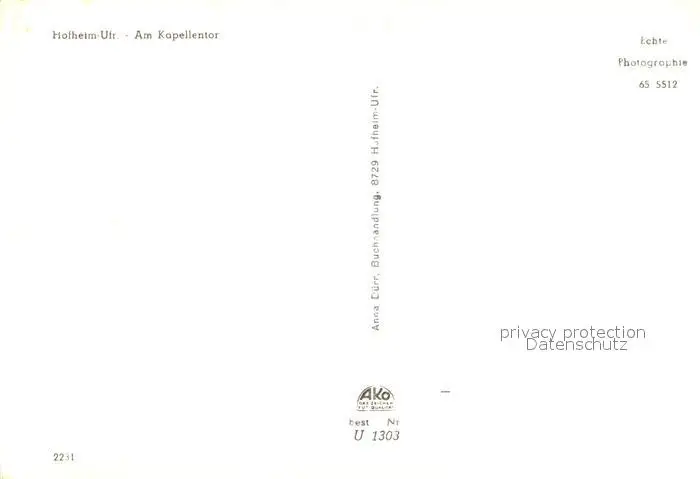 Hofheim_Unterfranken Kapellentor Hofheim Unterfranken postalisch nicht gelaufen nach 1965 Erhaltung siehe scans [NatalD47] NataID47