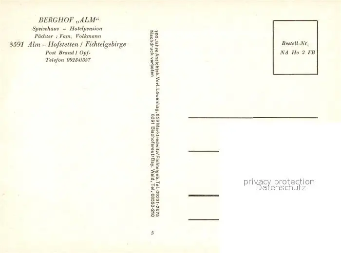 Hofstetten_Hilpoltstein Kategorie Alte Ansichtskarten Postkarten bx63016 Hofstetten_Hilpoltstein Berghof Alm Hofstetten_Hilpoltstein postalisch nicht gelaufen nach 1965 Erhaltung siehe scans [KathaD81]
