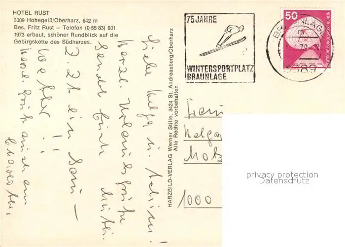Hohegeiss_Harz Hotel Rust Hohegeiss Harz postalisch gelaufen 1979 Erhaltung siehe scans [KathaD81] Kathoren