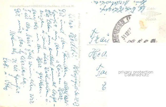 Hohegeiss_Harz Panorama Hohegeiss Harz postalisch gelaufen 1953 Erhaltung siehe scans [WerneD78] WernPID7