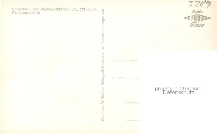 Hohegeiss_Harz Wolfsbachmuehle Hohegeiss Harz postalisch nicht gelaufen 1921-1965 Erhaltung siehe scans [WerneD78] WernPID7