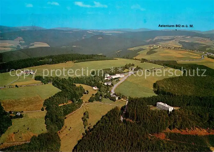 Hoheleye mit Blick zum Astenturm Hoheleye postalisch gelaufen 1977 Fliegeraufnahme Erhaltung siehe scans [FriedD77] Fliegeraufnahme Frierer