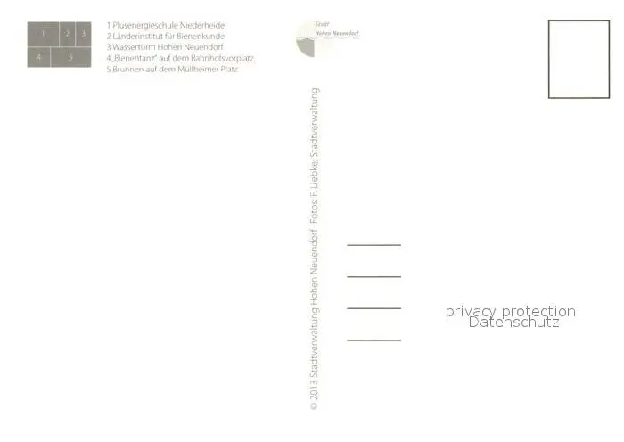 Hohen_Neuendorf Plusenergieschule Laenderinstitut fuer Bienenkunde Wasserturm Bienentanz auf dem Bahnhofsvorplatz Brunnenauf dem Muellheimer Platz Hohen Neuendorf postalisch nicht gelaufen nach 1965 Erhaltung siehe scans [WerneD78] WernPID7