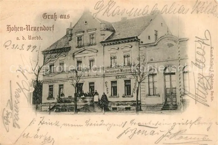 Hohen Neuendorf Kategorie Alte Ansichtskarten Postkarten bx80859 Hohen_Neuendorf Restaurant Waldesruh Hohen Neuendorf postalisch gelaufen 1899 Erhaltung siehe scans [KathaD81]
