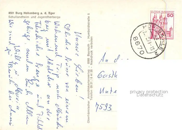 Hohenberg_Eger Burg Hohenberg Panorama Burgtor Stadtmauer Hohenberg Eger postalisch gelaufen 1979 Erhaltung siehe scans [WerneD78] WernPID7