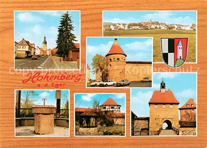 AK / Ansichtskarte Hohenberg_Eger Stadtansichten Stadtmauer Stadttor Wappen Hohenberg Eger