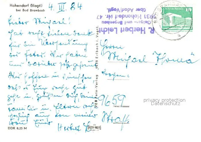 Hohendorf_Vogtland Teilansichten Gasthaus Zum Wiesenthal Hohendorf_Vogtland postalisch gelaufen 1984 Erhaltung siehe scans [WerneD78] WernPID7