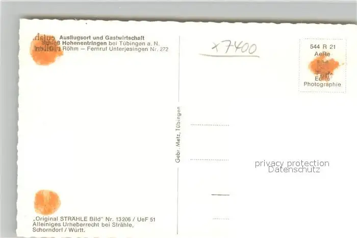 Hohenentringen_Tuebingen Fliegeraufnahme Schloss Hohenentringen Tuebingen postalisch nicht gelaufen 1921-1965 Erhaltung siehe scans [KathaD81] Kathoren