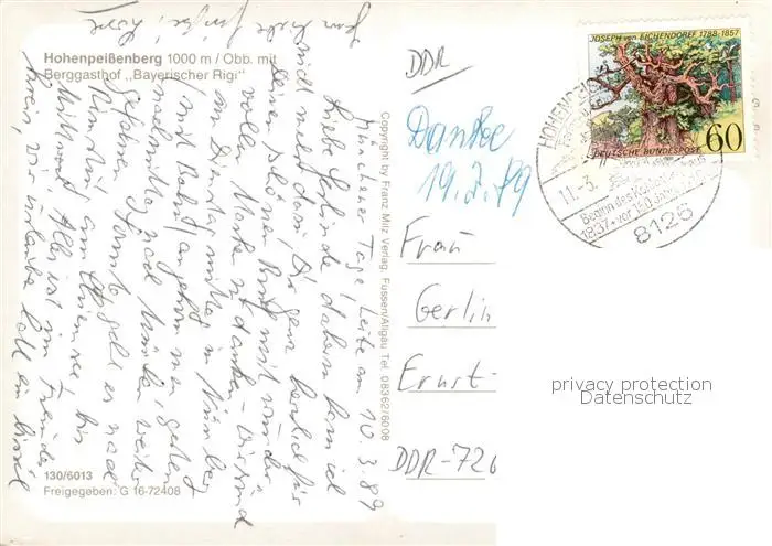 Hohenpeissenberg Fliegeraufnahme mit Berggasthof Bayerischer Rigi Hohenpeissenberg postalisch gelaufen 1989 Erhaltung siehe scans [WerneD78] WernPID7