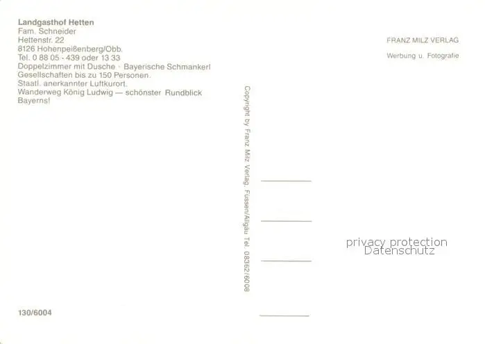 Hohenpeissenberg Landgasthof Hetten Gastraeume Hohenpeissenberg postalisch nicht gelaufen nach 1965 Erhaltung siehe scans [WerneD78] WernPID7