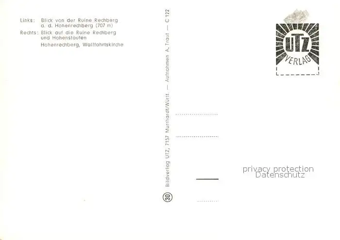 Hohenrechberg Ruine Rechberg Wallfahrtskirche Hohenstaufen Hohenrechberg postalisch nicht gelaufen nach 1965 Erhaltung siehe scans [WerneD78] WernPID7