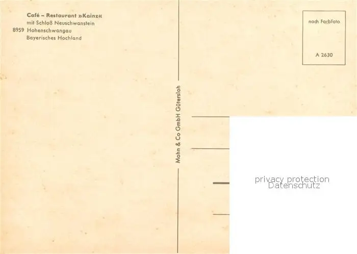 Hohenschwangau Café Restaurant Kainz mit Schloss Neuschwanstein Hohenschwangau postalisch nicht gelaufen nach 1965 Erhaltung siehe scans [FriedD77] Frierer