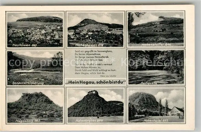 Hohentwiel Neuhowen Donauversickerung Maegdeberg Hohenkraehen Aachquelle Hohenstafel Hohentwiel postalisch nicht gelaufen 1921-1965 Erhaltung siehe scans [LiesaD40] LiesID40