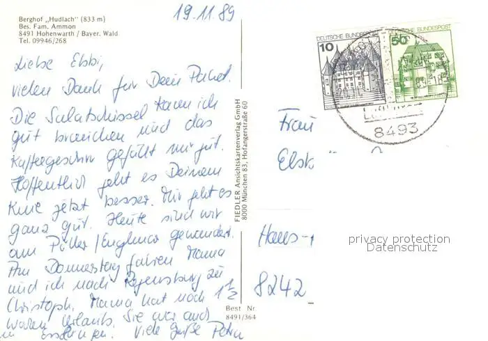 Hohenwarth_Koetzting Berghof Hudlach Hohenwarth Koetzting postalisch gelaufen 1989 Erhaltung siehe scans [WerneD78] WernPID7