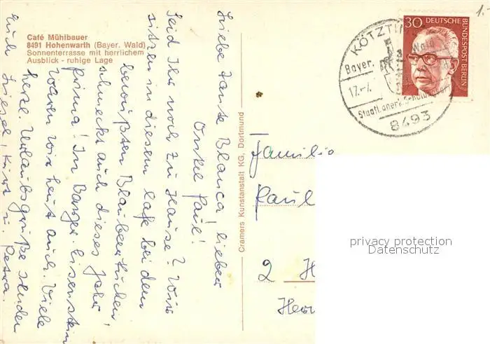 Hohenwarth_Koetzting Cafe Muehlbauer Gaststube Hohenwarth Koetzting postalisch gelaufen 1973 Erhaltung siehe scans [WerneD78] WernPID7