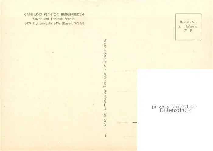 Hohenwarth_Koetzting Cafe Pension Bergfrieden Hohenwarth Koetzting postalisch nicht gelaufen nach 1965 Erhaltung siehe scans [KathaD81] Kathoren