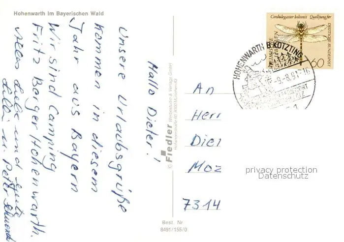 Hohenwarth_Koetzting Panorama Hohenwarth Koetzting postalisch gelaufen 1991 Erhaltung siehe scans [KathaD81] Kathoren
