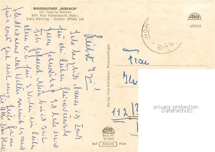 Hohenwarth_Koetzting Waldgasthof Hudlach Hohenwarth Koetzting postalisch gelaufen nach 1965 Erhaltung siehe scans [WerneD78] WernPID7