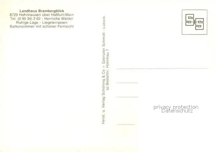 Hohnhausen Landhaus Brambergblick Gastraum Terrasse Panorama Hohnhausen postalisch nicht gelaufen nach 1965 Erhaltung siehe scans [FriedD77] Frierer