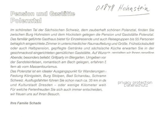 Hohnstein_Saechsische_Schweiz Gaststaette Polenztal Bar Gaststube Panorama Hohnstein_Saechsische postalisch nicht gelaufen nach 1965 Werbekarte (keine Postkarte) Erhaltung siehe scans [WerneD78] Werbekarte (keine Postkarte) WernPID7
