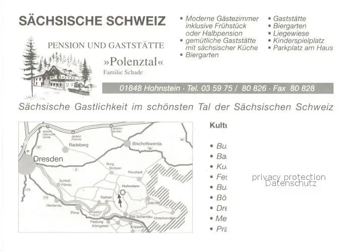 Hohnstein_Saechsische_Schweiz Pension und Gaststaette Polenztal Fliegeraufnahme Zimmer Bad Hohnstein_Saechsische postalisch nicht gelaufen nach 1965 Werbekarte (keine Postkarte) Erhaltung siehe scans [WerneD78] Werbekarte (keine Postkarte) WernPID7