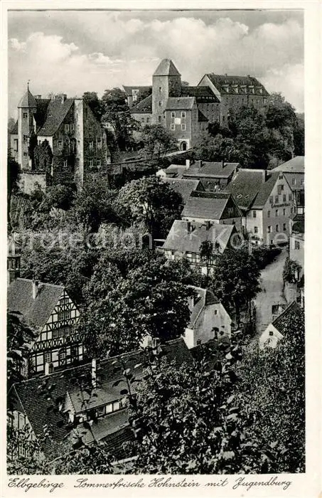 Hohnstein_Saechsische_Schweiz Stadt mit Jugendherberge Elbgebirge Hohnstein_Saechsische postalisch gelaufen 1942 Erhaltung siehe scans [LiesaD40] LiesID40