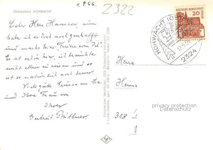 Hohwacht_Ostseebad Fliegeraufnahme Hohwacht_Ostseebad postalisch gelaufen 1966 Erhaltung siehe scans [WerneD78] WernPID7