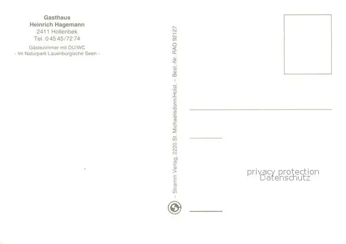 Hollenbek Gasthaus Hagemenn Gaestezimmer Seepartie Weiher Hollenbek postalisch nicht gelaufen nach 1965 Erhaltung siehe scans [WerneD78] WernPID7