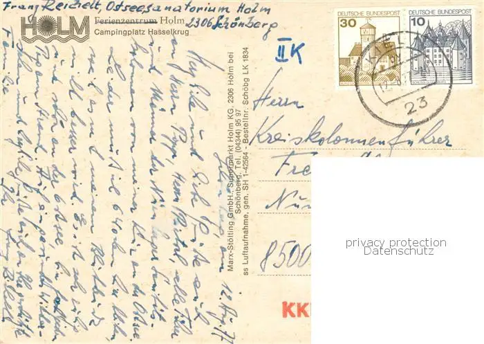 Holm_Holstein Campingplatz Hasselkrug Saint-Germain-de-Calberte Holm_Holstein postalisch gelaufen 1977 Erhaltung siehe scans [WerneD78] WernPID7
