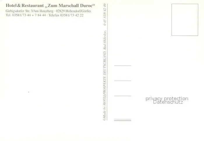 Holtendorf Hotel Restaurant Zum Marschall Duroc Terrasse postalisch nicht gelaufen nach 1965 Erhaltung siehe scans [FriedD77] Frierer