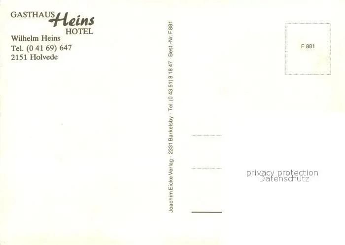 Holvede Gasthaus Heins Hotel Restaurant Kegelbahn Holvede postalisch nicht gelaufen nach 1965 Erhaltung siehe scans [FriedD77] Frierer
