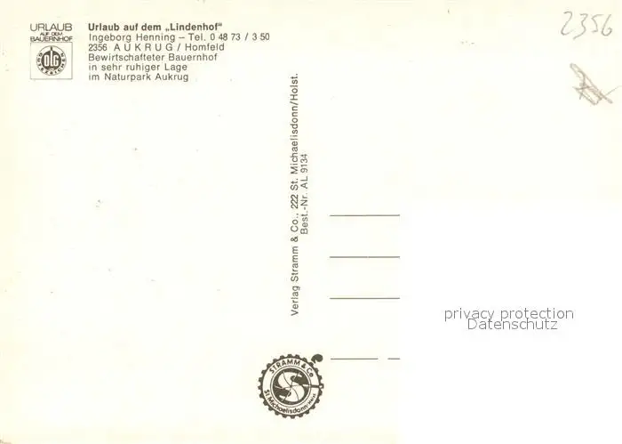 Homfeld Urlaub auf dem Lindenhof Homfeld postalisch nicht gelaufen nach 1965 Erhaltung siehe scans [FriedD77] Frierer