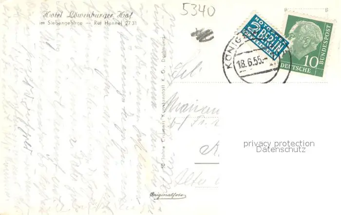 Honnef_Bad Hotel Loewenburger Hof Fliegeraufnahme Siebengebirge Honnef_Bad postalisch gelaufen 1955 Erhaltung siehe scans [LiesaD40] LiesID40