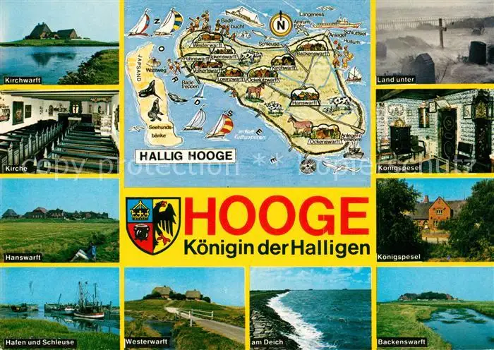 AK / Ansichtskarte Hooge_Hallig Kirchwarft Kirche Hafen Schleuse Westerwarft Deich Koenigspesel Hooge Hallig