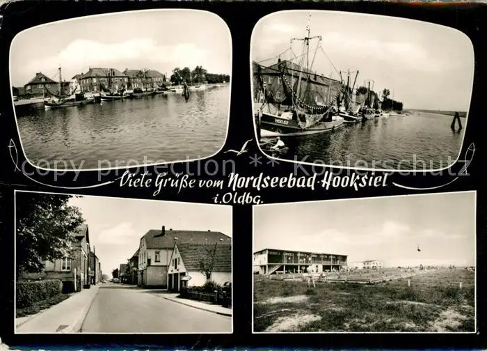 AK / Ansichtskarte Hooksiel_Nordseebad Hafen Strassenpartie Schwimmbad Hooksiel_Nordseebad