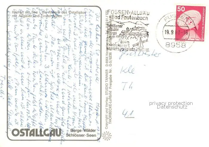 Hopfen_See Riviera des Ostallgaeus mit Allgaeuer und Tiroler Alpen Fliegeraufnahme Hopfen_See postalisch gelaufen 1980 Erhaltung siehe scans [FriedD77] Frierer