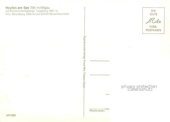 Hopfen_See mit Kenzen Hochgebirge Tegelberg Hoh Straussberg und Schloss Neuschwanstein Hopfen_See postalisch nicht gelaufen nach 1965 Erhaltung siehe scans [WerneD78] WernPID7