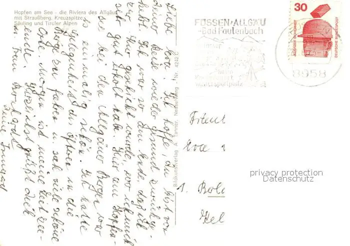 Hopfen_See mit Straussberg Kreuzspitze Saeuling und Tiroler Alpen Hopfen_See postalisch gelaufen 1973 Erhaltung siehe scans [WerneD78] WernPID7