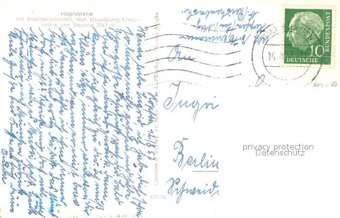 Hopfensee mit Brandnerschrofen Hohem Straussberg Kreuzspitze und Saeuling Hopfensee postalisch gelaufen 1957 Erhaltung siehe scans [WerneD78] WernPID7