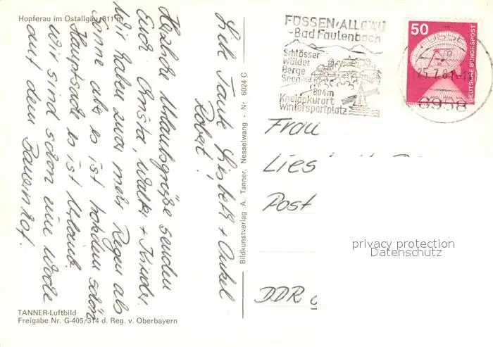 Hopferau Fliegeraufnahme mit Tegelberg Straussberg Zugspitze Saeuling Zingerstein Hopferau postalisch gelaufen 1981 Erhaltung siehe scans [WerneD78] WernPID7