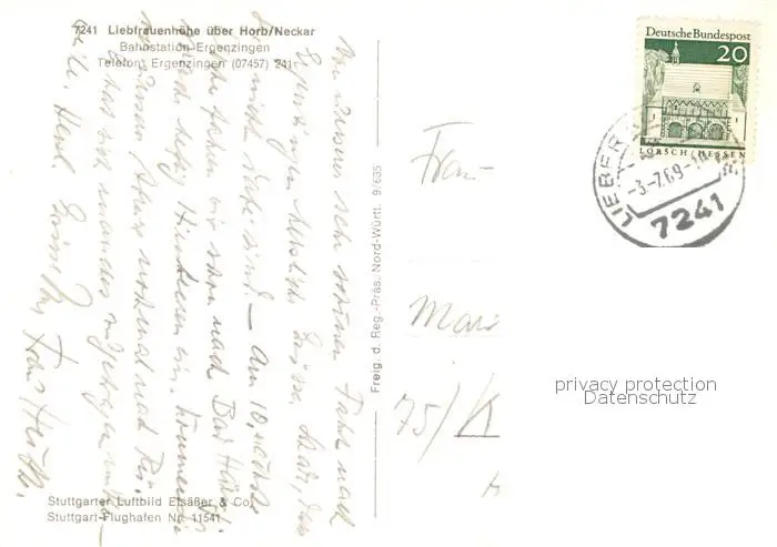 Horb_Neckar Liebfrauenhoehe Fliegeraufnahme Horb Neckar postalisch gelaufen 1969 Erhaltung siehe scans [WerneD78] WernPID7