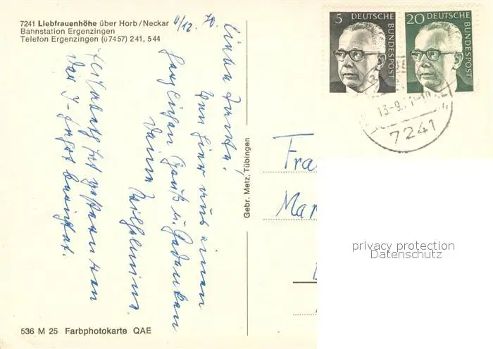 Horb_Neckar Liebfrauenhoehe Horb Neckar postalisch gelaufen 1970 Fliegeraufnahme Erhaltung siehe scans [FriedD77] Fliegeraufnahme Frierer