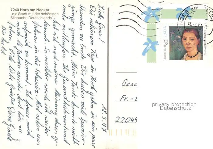 Horb_Neckar Ortsansicht mit Kirche Horb Neckar postalisch gelaufen 1997 Erhaltung siehe scans [WerneD78] WernPID7