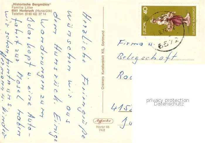 Horbruch Historische Bergmuehle Teich Horbruch postalisch gelaufen 1976 Erhaltung siehe scans [WerneD78] WernPID7