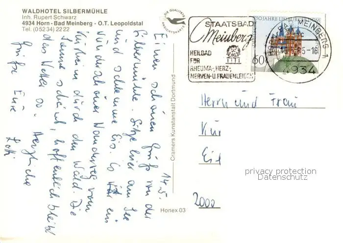 Horn-Bad_Meinberg Waldhotel Silbermuehle Horn-Bad_Meinberg postalisch gelaufen 1985 Erhaltung siehe scans [WerneD78] WernPID7