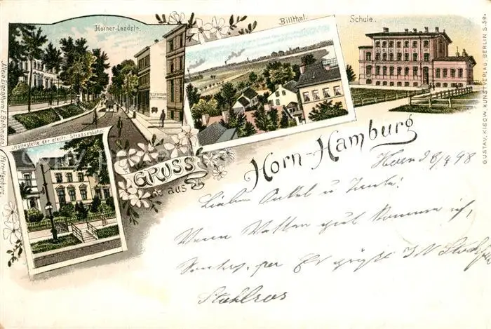 Horn Hamburg Kategorie Alte Ansichtskarten Postkarten bx78971 Horn_Hamburg Horner Landstr Billthal Schule Haltestelle der Strassenbahn Horn Hamburg postalisch gelaufen 1998 Erhaltung siehe scans [WerneD78]