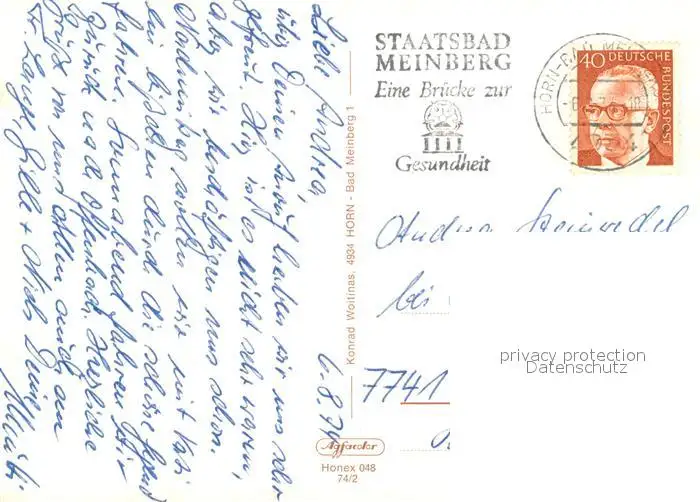 Horn_Lippe Nordstrasse Fachwerkhaeuser Jugendherberge Turm Bleiche Freibad Horn_Lippe postalisch gelaufen 1974 Erhaltung siehe scans [FriedD77] Frierer