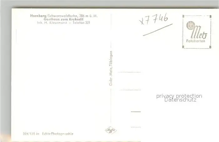 Hornberg_Schwarzwald Gasthaus zum Krokodil Hornberg Schwarzwald postalisch nicht gelaufen 1921-1965 Erhaltung siehe scans [FriedD77] Frierer