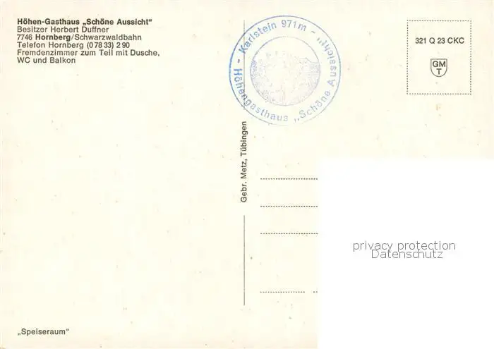 Hornberg_Schwarzwald Hoehen Gasthaus Schoene Aussicht Speiseraum Hornberg Schwarzwald postalisch nicht gelaufen nach 1965 Erhaltung siehe scans [WerneD78] WernPID7